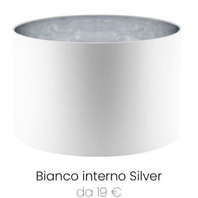 Paralume Cilindrico in tessuto Chinette Bianco con interno in PVC Silver Lucido. Prodotto realizzato artigianalmente con materiali pregiati Made in Italy, stile semplice ed elegante, ideale per tutti gli ambienti.