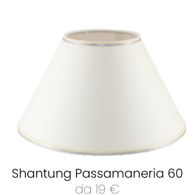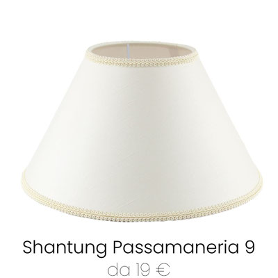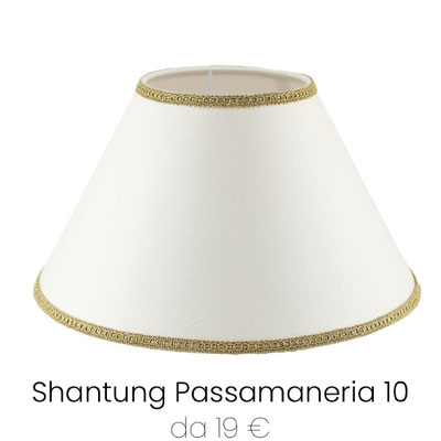 Paralume Cono in tessuto Shantung Avorio con passamaneria 9, il più amato. Prodotto realizzato artigianalmente con materiali pregiati Made in Italy. Finitura dallo stile classico, ideale per le basi più pregiate