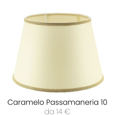 Paralume in Pergamena Caramelo con passamaneria 32. Prodotto realizzato artigianalmente con materiali pregiati Made in Italy, illumina creando un'atmosfera calda, ideale per gli ambienti dallo stile classico.