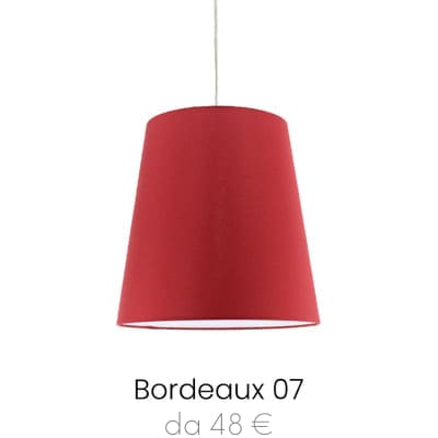 Lampada a sospensione Long in tessuto Pongè Bordeaux 07. Prodotto realizzato artigianalmente, 100 % Made in Italy. Stile semplice ed elegante, ideale per tutti gli ambienti. Fornito di Cavo Pendel 70 cm disponibile in filo trasparente con Rosone Cromato oppure filo tessile bianco con Rosone Bianco.