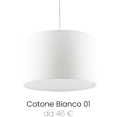 Lampada a sospensione Cilindro in tessuto Cotone Avorio 02. Prodotto realizzato artigianalmente, 100 % Made in Italy. Stile semplice ed elegante, ideale per tutti gli ambienti. Fornito di Cavo Pendel disponibile in filo trasparente con Rosone Cromato oppure filo tessile bianco con Rosone Bianco.