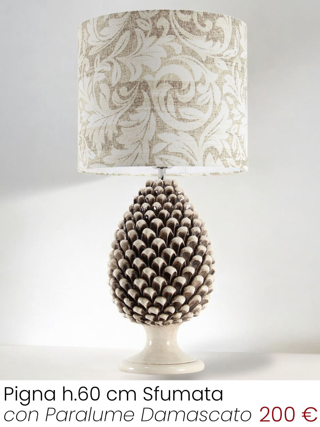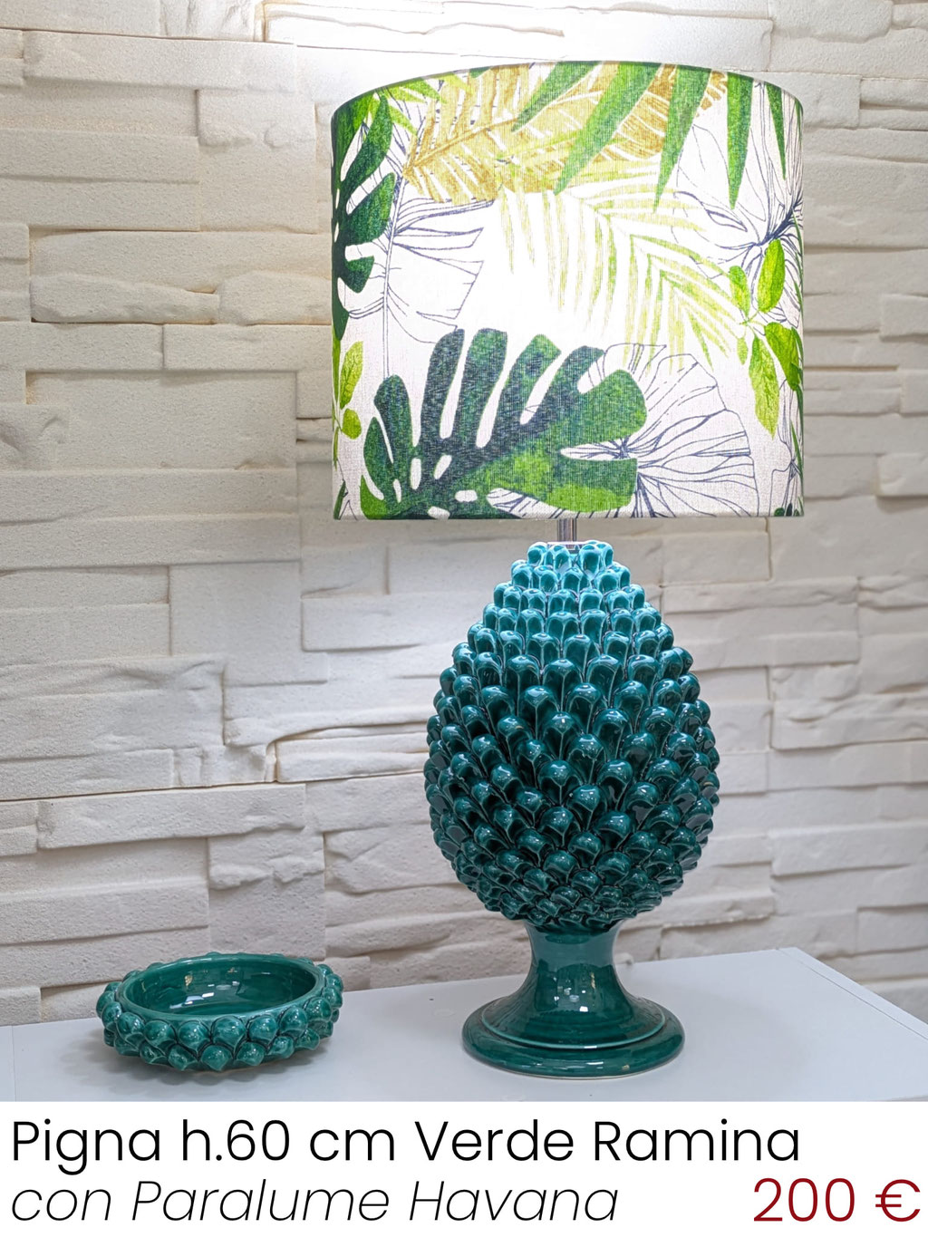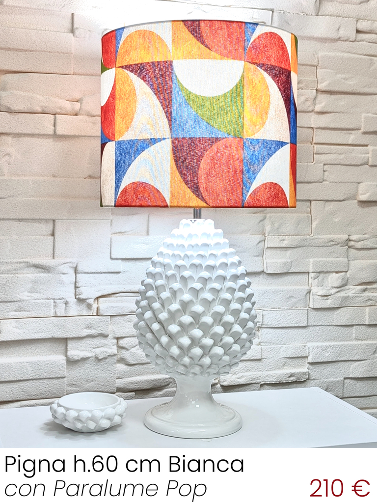 Il lume Pigna h.60 cm di Caltagirone in colore Bianco è un oggetto unico: la tradizione della maiolica siciliana si incontra con la qualità dei nostri paralumi. La fantasia Oasi Verde che si unisce alle sfumature brillanti della ceramica. Nasce quindi un prodotto unico, un lume che arricchisce ogni angolo della casa, diventando un regalo perfetto per te o chi vuoi tu. Scopriamo le sue caratteristiche: