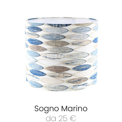 Paralume Cilindro Alto in stoffa fantasia MEDITERRANEO. Prodotto realizzato artigianalmente con materiali pregiati Made in Italy. Si tratta di vera stoffa applicata su supporto rigido, lavorato interamente a mano. Nessun bordo di carta a rifinire ma la stessa stoffa ad avvolgere la struttura del paralume.