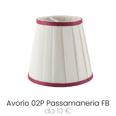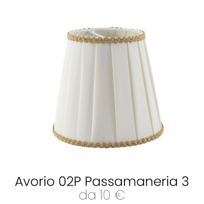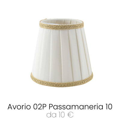Paralume Impero Plissettato con Attacco Molla in tessuto plissettato Pongè Avorio 02P, rifinito con passamaneria 1. Paralume piccolo per lampadari e applique, prodotto realizzato artigianalmente con pregiati materiali Made in Italy. Attacco a Molla Clip: aggancio diretto alla lampadina Mignon E14, un ricambio perfetto anche per lampadari e applique più antichi.