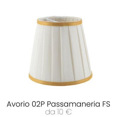 Stai cercando dei paralumi piccoli per rinnovare il tuo lampadario? Un Copriluce per le applique del corridoio? Sei nel posto giusto! La nostra gamma di Paralumi con attacco a molla Clip sono perfetti per creare la giusta atmosfera in poche mosse. Per uno stile classico e contemporaneo, il paralume Impero Plissettato con Attacco a Molla è realizzato a mano dai nostri artigiani. Dei veri e propri piccoli gioielli per il tuo arredamento disponibili in 3 Diametri differenti. Un ricambio perfetto per le campagne di vetro di lampadari e applique antichi. Si aggancia direttamente alla lampadina Mignon E14. Qui trovi la nostra selezione di eleganti passamanerie: scegli la combinazione con il tessuto che preferisci e metti nel carrello.