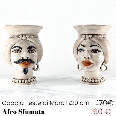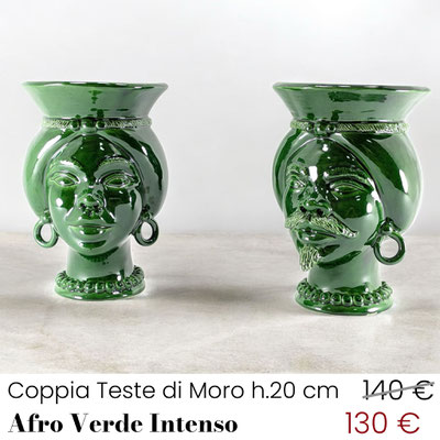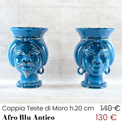 La coppia di Teste di Moro h.20 cm "AFRO TURCHESE" è un oggetto unico: nelle forme e nel colore. La finitura lucida dona un aspetto moderno ma nello stesso tempo si adatta all'arredamento dallo stile contemporaneo. Scopriamo le sue caratteristiche: