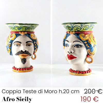 Le Teste di Moro di Caltagirone: un capolavoro di artigianato che arreda con stile. Ogni testa è un'opera unica, realizzata a mano dai maestri ceramisti siciliani. Simbolo di passione e tradizione, queste sculture in ceramica decorano con eleganza e originalità qualsiasi ambiente. Perfette per interni ed esterni, le Teste di Moro sono un complemento d'arredo che unisce storia e design, regalando un tocco di Sicilia alla tua casa. Scegli la tua testa preferita e ricevila comodamente a casa.
