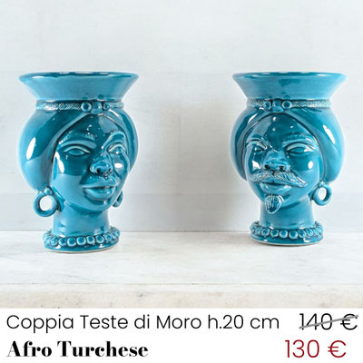 La coppia di Teste di Moro h.20 cm "AFRO VERDE INTENSO" è un oggetto unico: nelle forme e nel colore. La finitura lucida dona un aspetto moderno ma nello stesso tempo si adatta all'arredamento dallo stile contemporaneo. Scopriamo le sue caratteristiche: