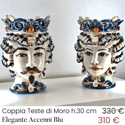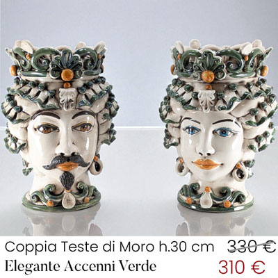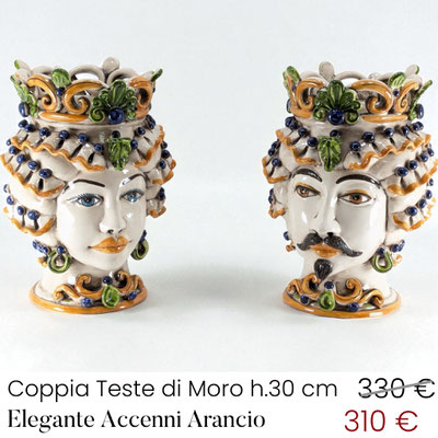 La coppia di Teste di Moro h.30 cm decoro "SICILY" è il simbolo del calore della terra dove viene foggiata: la Sicilia. Decorata anche nella parte posteriore, è un'esplosione di colori sapientemente abbinati. Scopriamo le sue caratteristiche:
